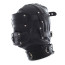 Create a customized sensory experience for your plaything! How much will you deprive them of? This hood has padded ears to take away your partners ability to hear, so that they will not be able to hear the swish of the flogger or the flick of the crop before you hit them. While there are three holes for their eyes and mouth, a blindfold allows you to take away their sight, so that your slave will be surprised by every touch and tickle. A penis-shaped gag even allows you to stuff their mouth so that every sound your partner makes is muffled and they cannot beg for more! Both accessories adjust and have locking buckles. The collar, which has 3 D-rings for attaching other BDSM accessories, also adjusts with a locking buckle. Tighten the back laces to fully confine your pet in the versatile hood, and then enjoy having your way with them!