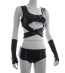This black studded dominant catwoman set including with a top, a short and a pair of gloves are made out of patent leather, which is more than suitable for dominant play with your partner.