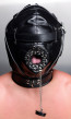 Confine your pet in a blackout hood that deprives them of sight, sound, and speech! This hood includes lacing at the back and three buckles, including the collar, that allow you to customize the fit and bind your lover in tight confinement. The padded blindfold portion is comfortable and ensures that they will have no idea what you have in store for them as you punish, please, and tease their vulnerable body. The holes at the nose allow for unrestricted breathing, but the ear area is completely closed so that they will hear only muffled sounds around them that will leave them helpless to your desires. The unique mouth feature pushes into their mouth like a ring-gag, opening them up so that they are unable to speak and all their moans and gasps will be muffled, particularly with the plug in place. Remove the plug to open them up to your preferred violation. A D-ring on the collar gives you the option to attach a leash, clamps, or a variety of other BDSM accessories.